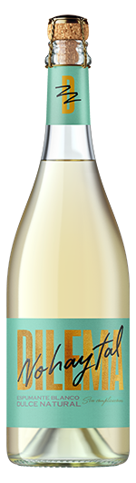 Dilema espumante Blanco Dulce Natural foi elaborado usando o método charmat. É um vinho fresco com bolhas finas e delicadas. À vista apresenta uma cor verde aço com reflexos dourados. Oferece notas expressivas de frutas tropicais e cítricas que o tornam um vinho refrescante, com acidez equilibrada e delicadamente doce. Ideal para acompanhar queijos macios, pratos condimentados e sobremesas.